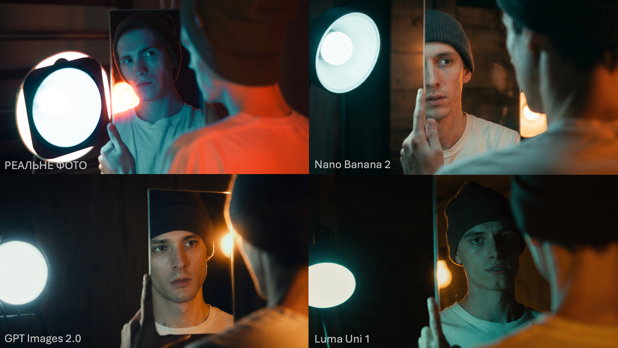 Жодна модель не вхопила головного: реальне фото — це конфлікт двох світлових світів на одному обличчі. Нейронки замість конфлікту дають гармонію. Бо гармонія — це статистичне середнє. А цікава фотографія живе на відхиленнях.