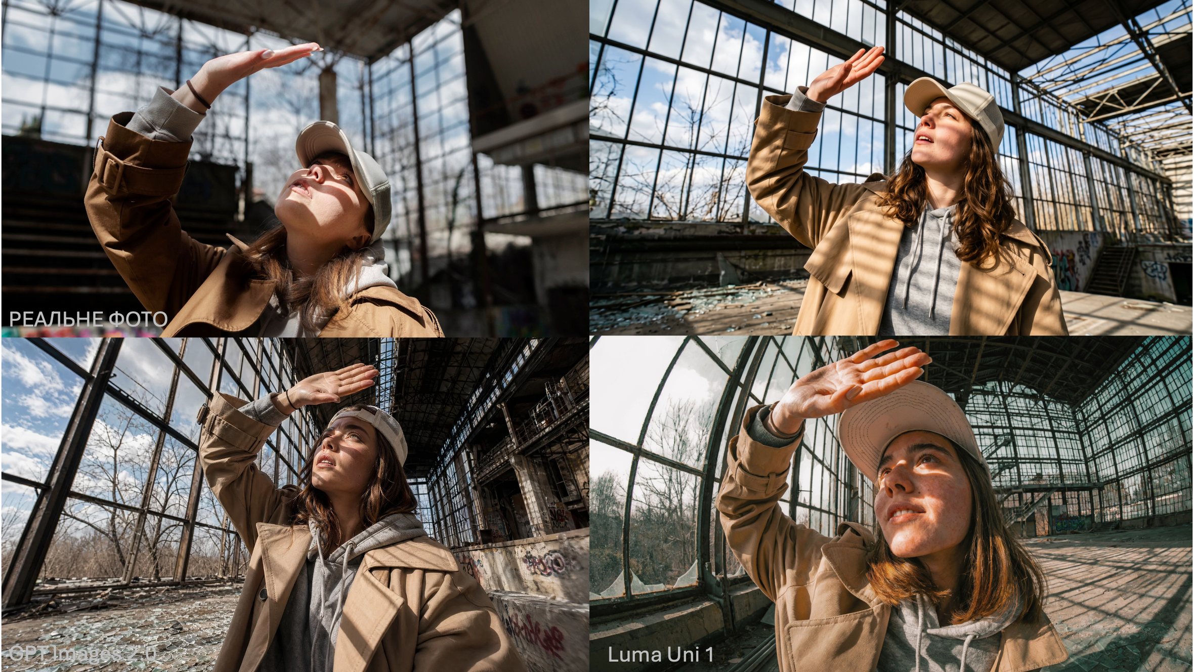 - Luma Uni 1 виглядає найстриманіше і, парадоксально, найбільш фото-подібно. Але саме їй не вистачає магії — картинка плоска, ніби знято на смартфон у полудень.