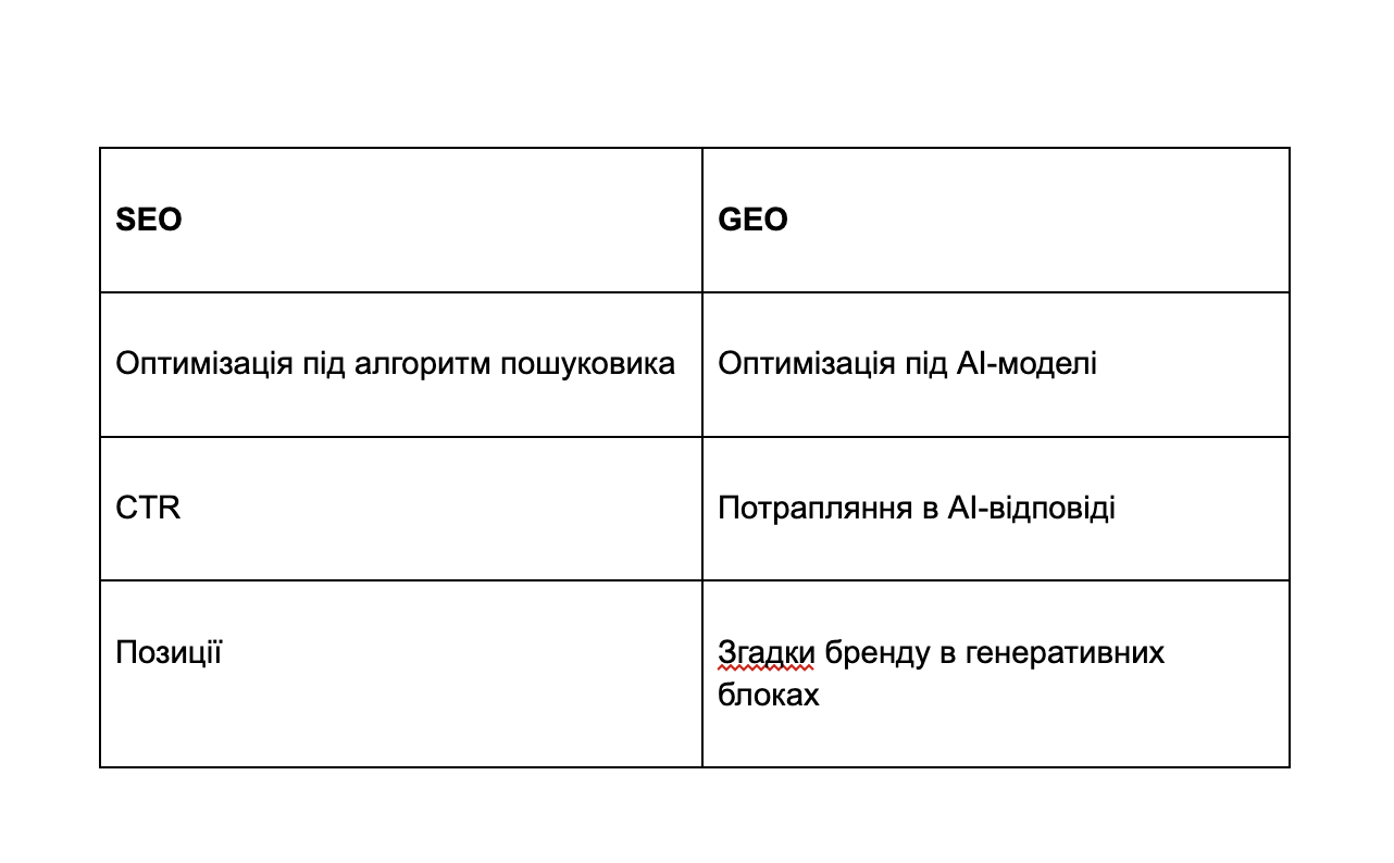 Але підходи до формування видимості бренду в AI-видачі суттєво різняться від процесу SEO-оптимізації.