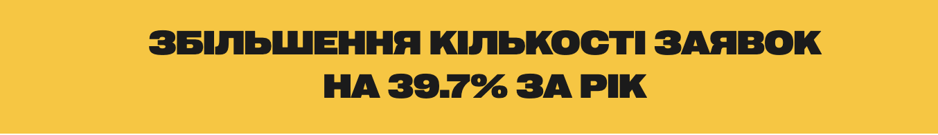 - Зростання кількості заявок за рік на +39,7%: у 2023 — 4705 заявок; у 2024 — 6572 заявки.