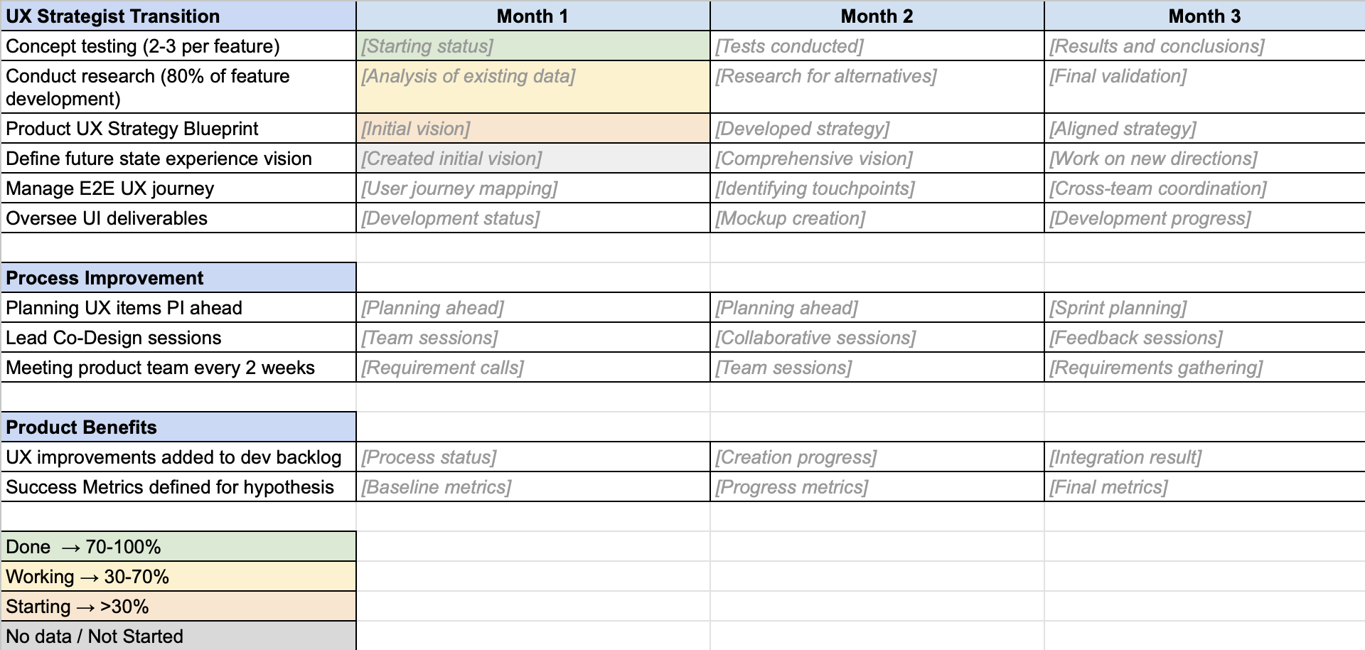 Ось один із реальний шаблонів трекера дизайнера з enterprise команди, який показує як Lean UX працює в корпоративній реальності: