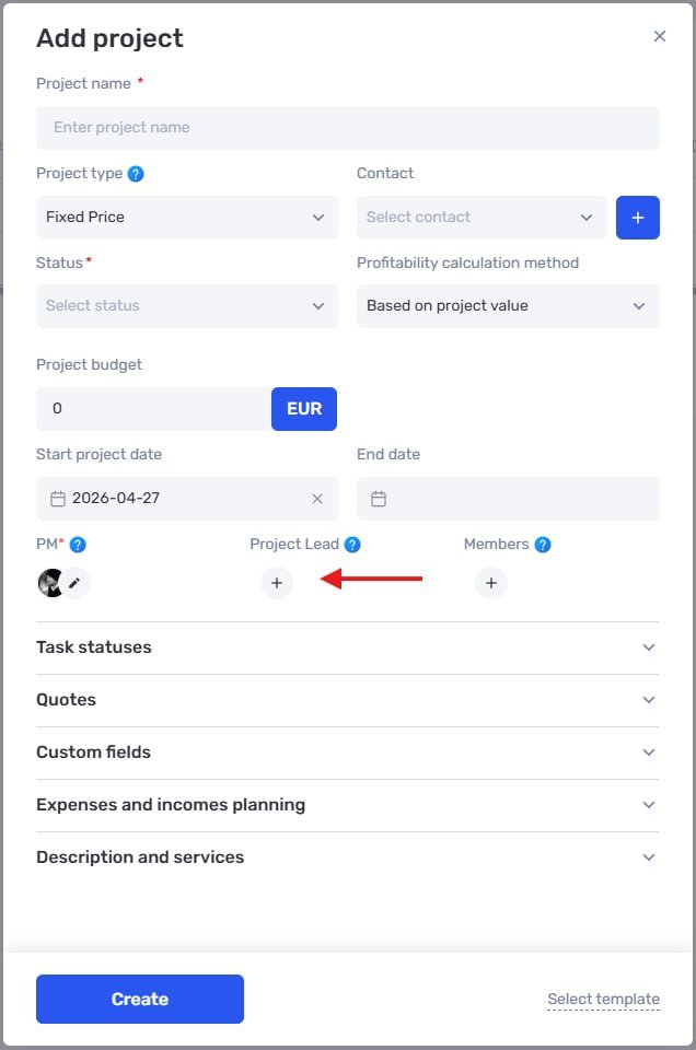 Added a Project Lead role. This is an additional responsible role with extended permissions — for those who help manage the project: tech lead, account manager, or co-manager.
