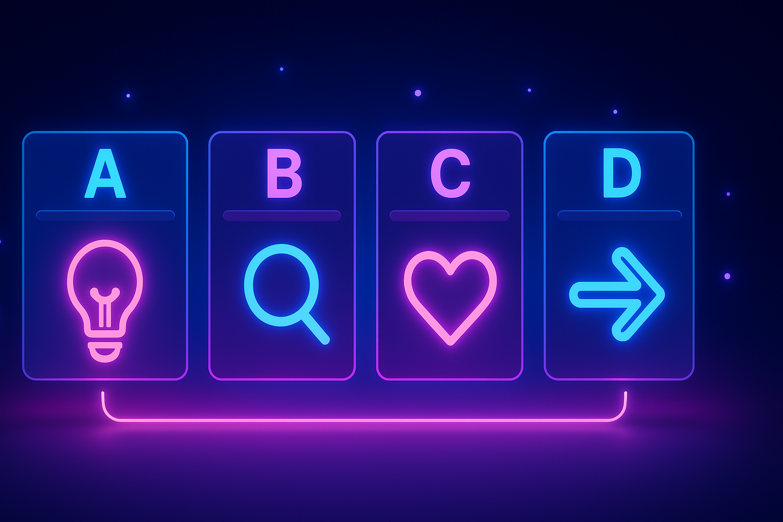 AIDA (Attention, Interest, Desire, Action) — це класична маркетингова формула, яка описує шлях користувача від зацікавлення до покупки. ABCD — це більш сучасний підхід, розроблений на основі даних та інструментів Google, який враховує поведінку digital-аудиторії та mobile-first контент.