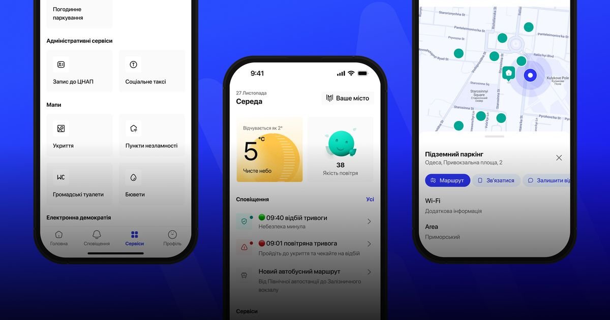 На старті користувачам будуть доступні сервіси, пов’язані з громадською безпекою, екологією, сповіщення (про повітряну тривогу, відключення світла, укриття, пункти незламності тощо) й новини.