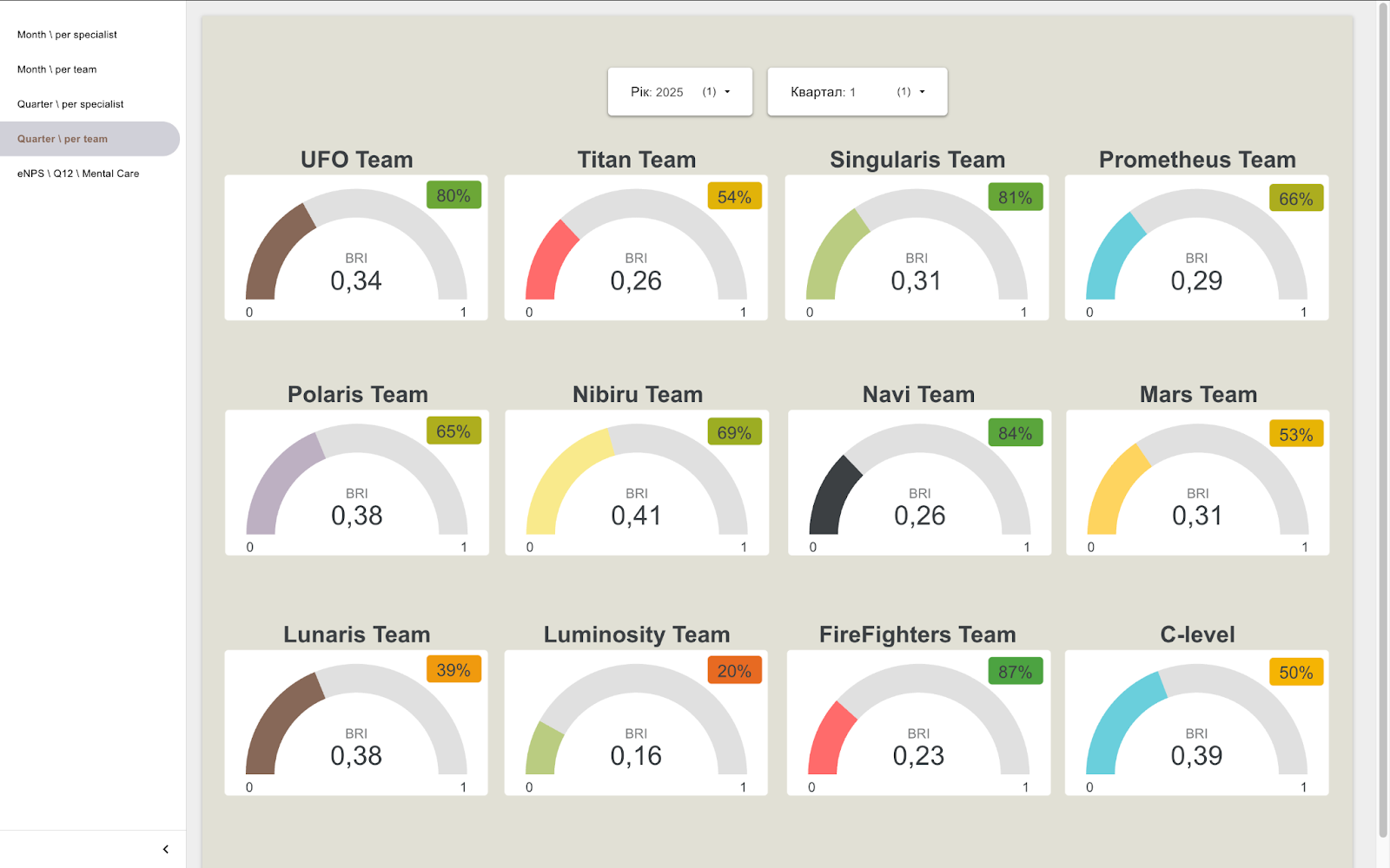 BRI — важлива частина нашого HR-дашборду, але далеко не єдина. Система набагато ширша: вона охоплює не лише ризики вигорання, а й загальне благополуччя, залученість і якість командного досвіду.