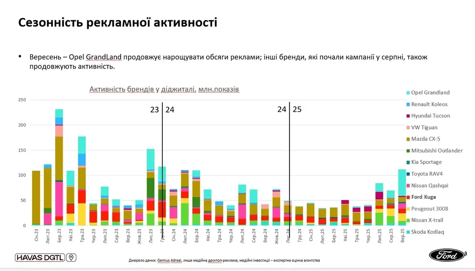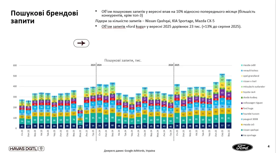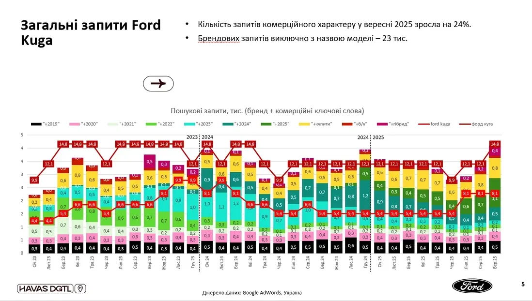 Ford діяв у тій самій логіці, однак на початку 2025 року це призвело до поступового падіння брендового інтересу: кількість запитів критично зменшилась.