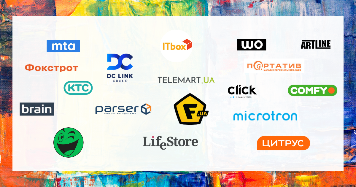 Rozetka. Comfy. LifeStore. Цитрус. Фокстрот. Brain. KTC. DC Link. Telemart. MTA. Parser. ITbox. Fua. Click. Microtron. Портатив. ШО. Artline.