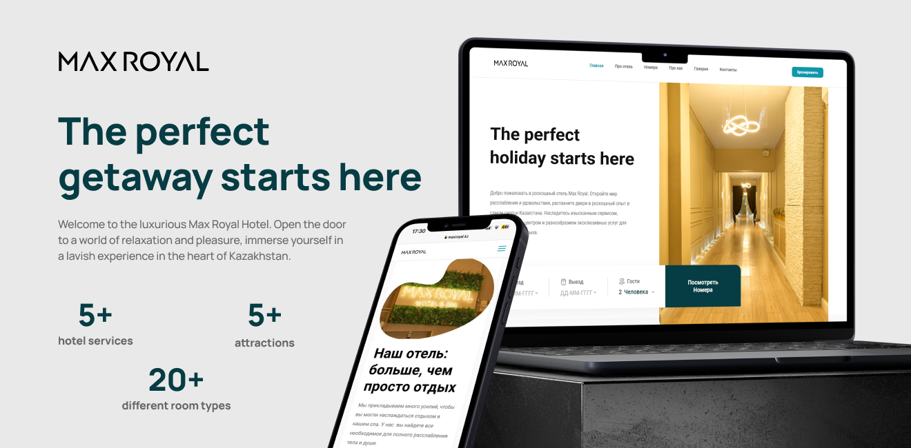 One such project is the website for MAX ROYAL, a modern hotel in Kazakhstan, with the primary goal of increasing brand awareness and organic traffic.