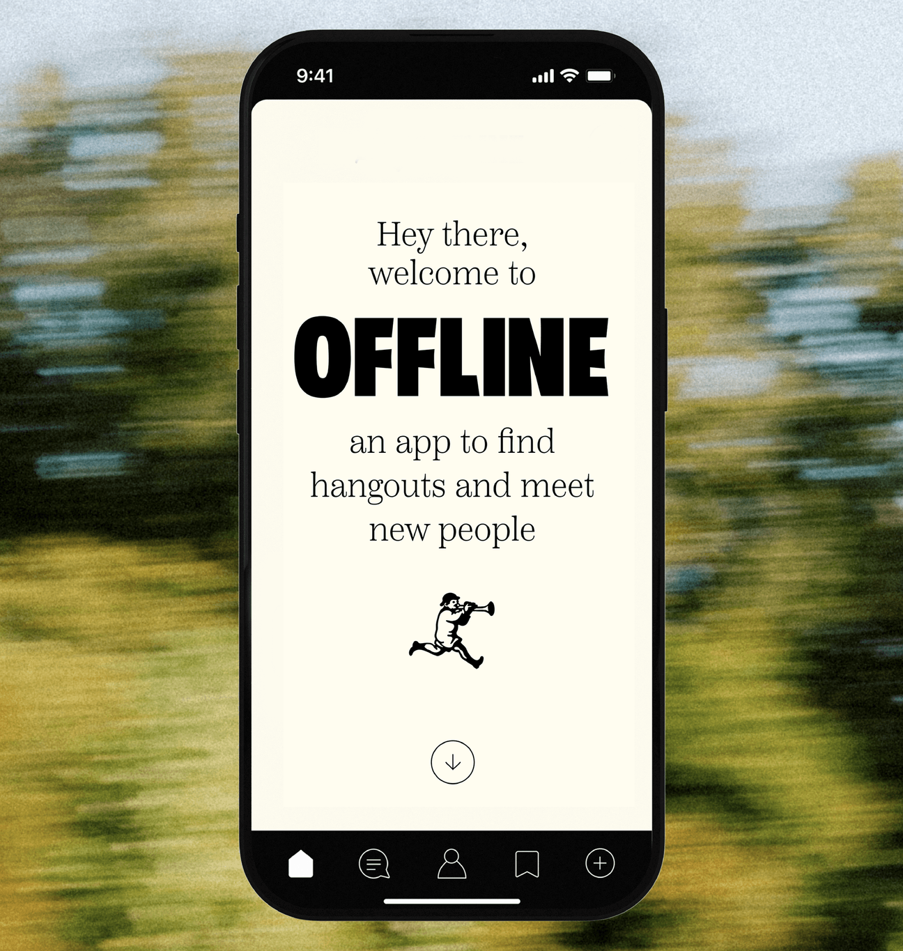 Offline — це застосунок, який допомагає знаходити події та людей для спільного дозвілля будь-де й будь-коли. Усе для того, щоб ви нарешті закрили ноутбук, увімкнули режим «Не турбувати» й насолодилися справжнім часом. Офлайн.