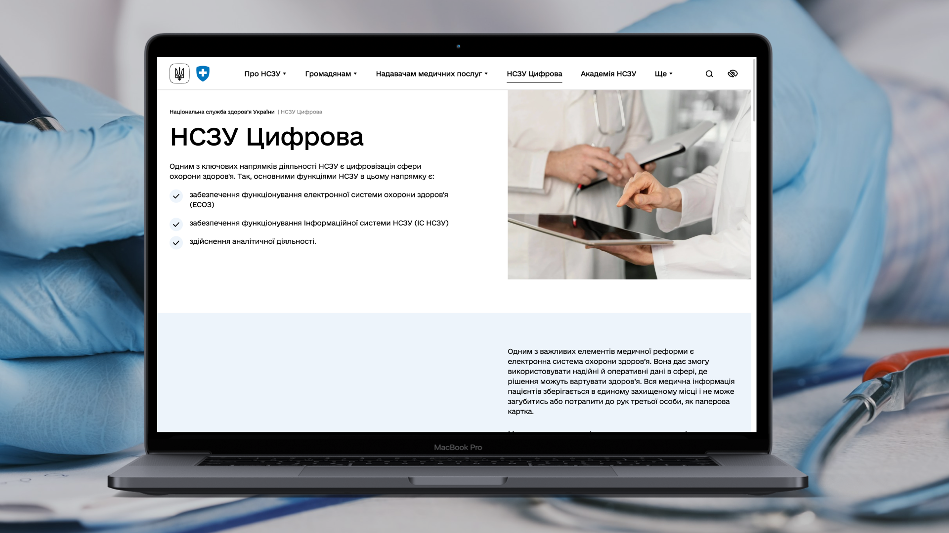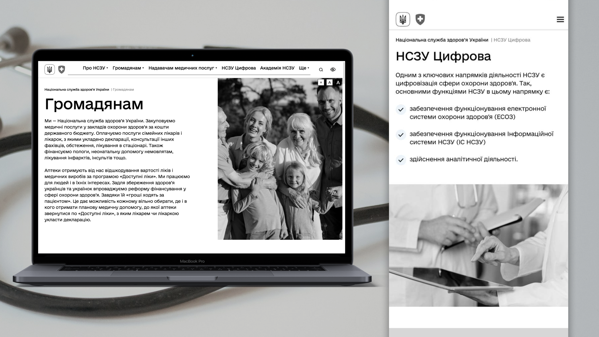 Кожен елемент нового сайту проходив через параметри відповідності законодавству та державним стандартам Мінцифри. У процесі роботи наша команда тісно взаємодіяла з НСЗУ, щоб цифрові рішення коректно відображали логіку роботи інституції та підтримували її комунікаційні завдання.