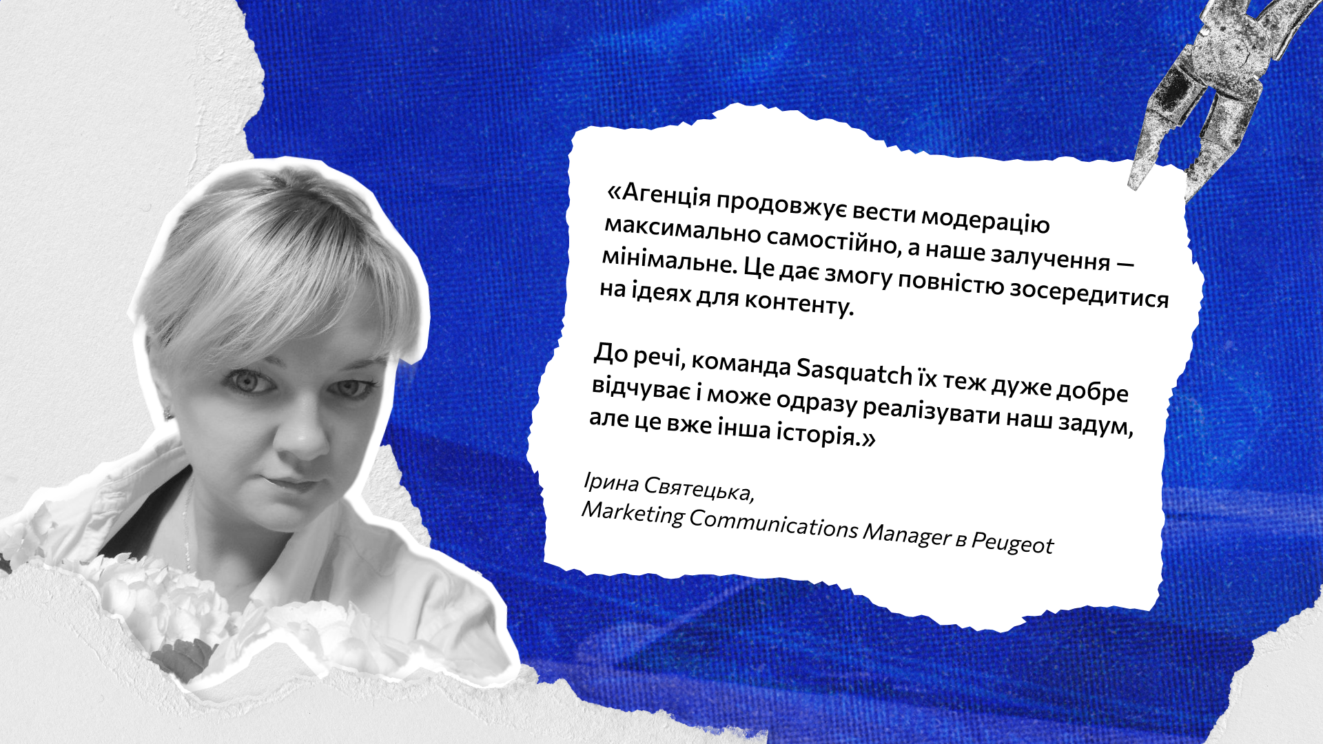 Для Peugeot, Citroёn, Opel та Jeep команда Sasquatch розробила унікальні стратегії. Щогодини й без вихідних модератори опрацьовують 100 % запитів.