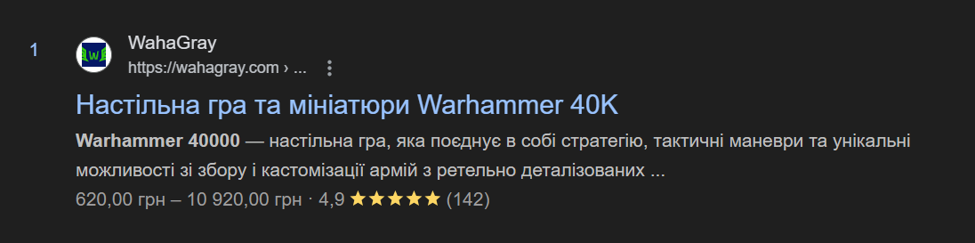 • 73% ключових запитів, пов’язаних із Warhammer, знаходяться у ТОП-3;