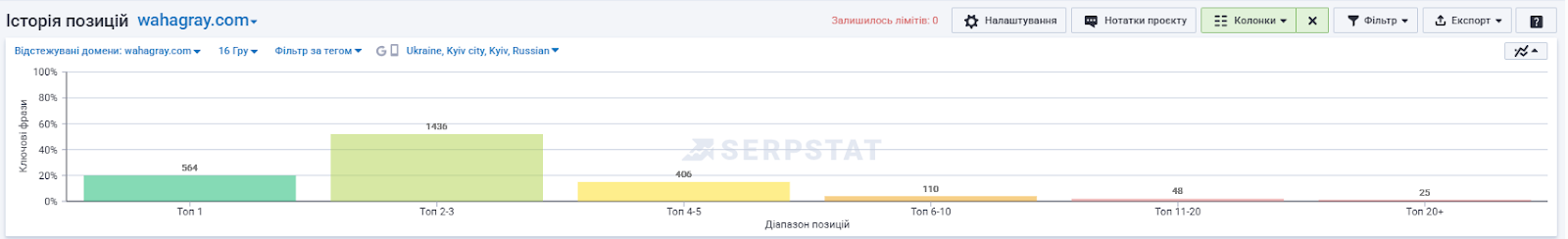 Разом з тим ми маємо хороше зростання видимості у пошуку. Сайт зайняв лідерські позиції у своїй сфері: