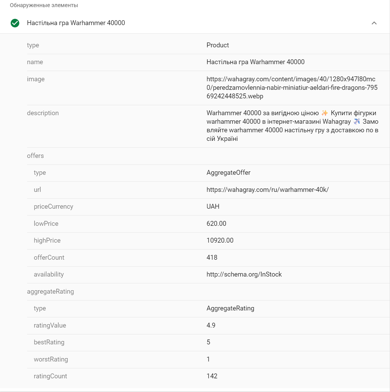 Ця розмітка призначена для карток товару, але SEO-фахівці використовують таку практику, щоб отримати максимум користі зі сторінки, як у нашому випадку — поліпшити сніпет (рейтинг, ціна).