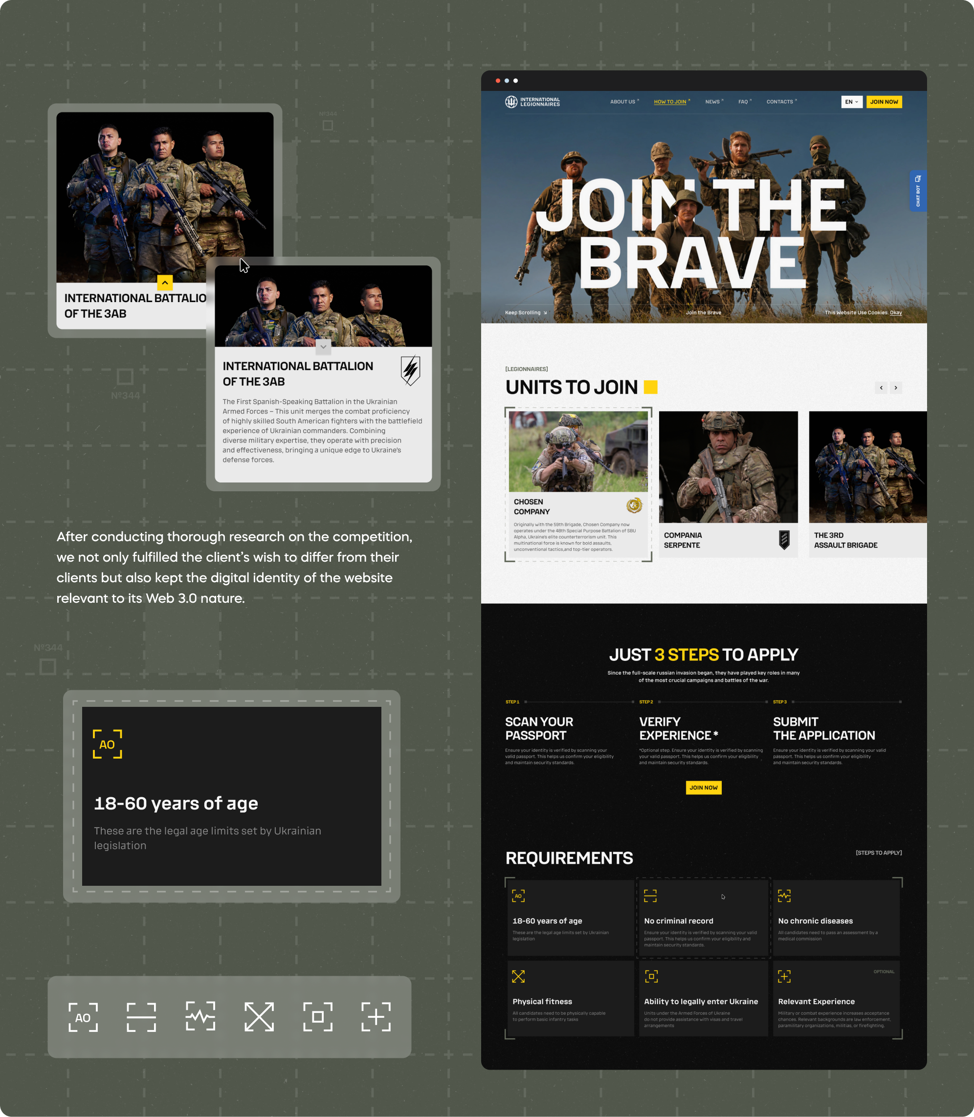Для International Legionnaires – офіційної ініціативи із залучення іноземних добровольців до ЗСУ – сайт мав стати місцем, де люди ухвалюють важливі рішення, а не просто ще одним каналом комунікації.