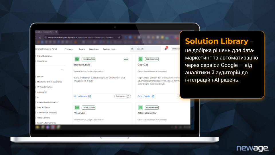 Причина проста: Google майже не промотує Solution Library для широкої аудиторії. Це місце, де зібрані утиліти, якими користуються агенції та технічні команди. Але саме там лежить усе, що дає маркетологу конкурентну перевагу: автоматизації, які економлять години та тисячі доларів.
