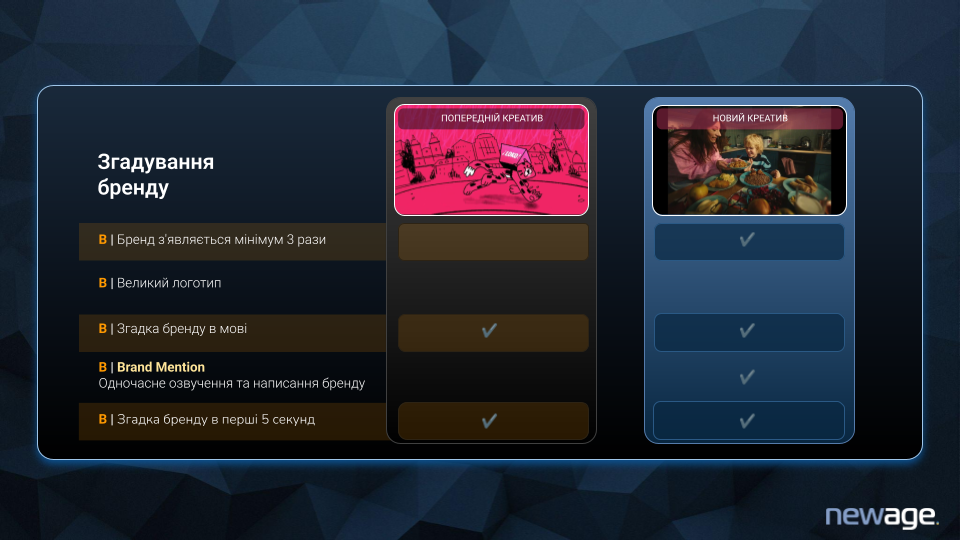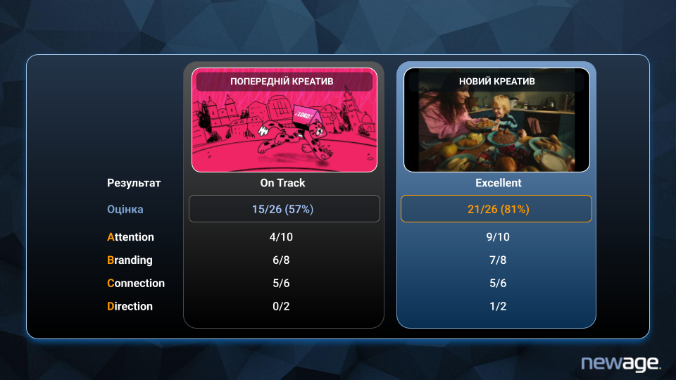Після оновлення креативу метрики зрушили вгору саме тому, що покращили конкретні, вимірювані елементи: ранній брендинг, емоцію, чіткий меседж.