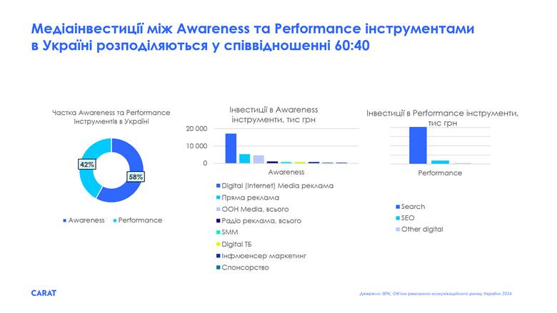 Орієнтуючись на дані ВРК за 2024 рік можна побачити, що бюджет розподілився 60:40 на користь Awareness інструментів.