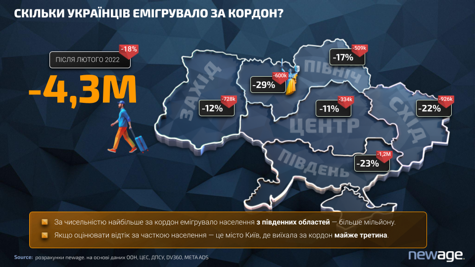 З 2022 року з України виїхали близько 4,3 мільйона осіб. Це ті, хто тимчасово або постійно мешкає за кордоном. Частина з них залишається активними у цифрових екосистемах — користуються українськими сервісами, дивляться український контент, зберігають зв’язок із брендами через соціальні мережі.