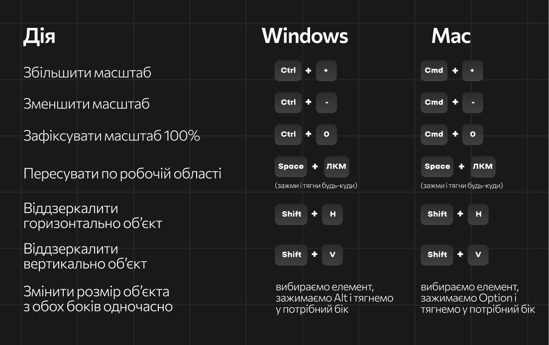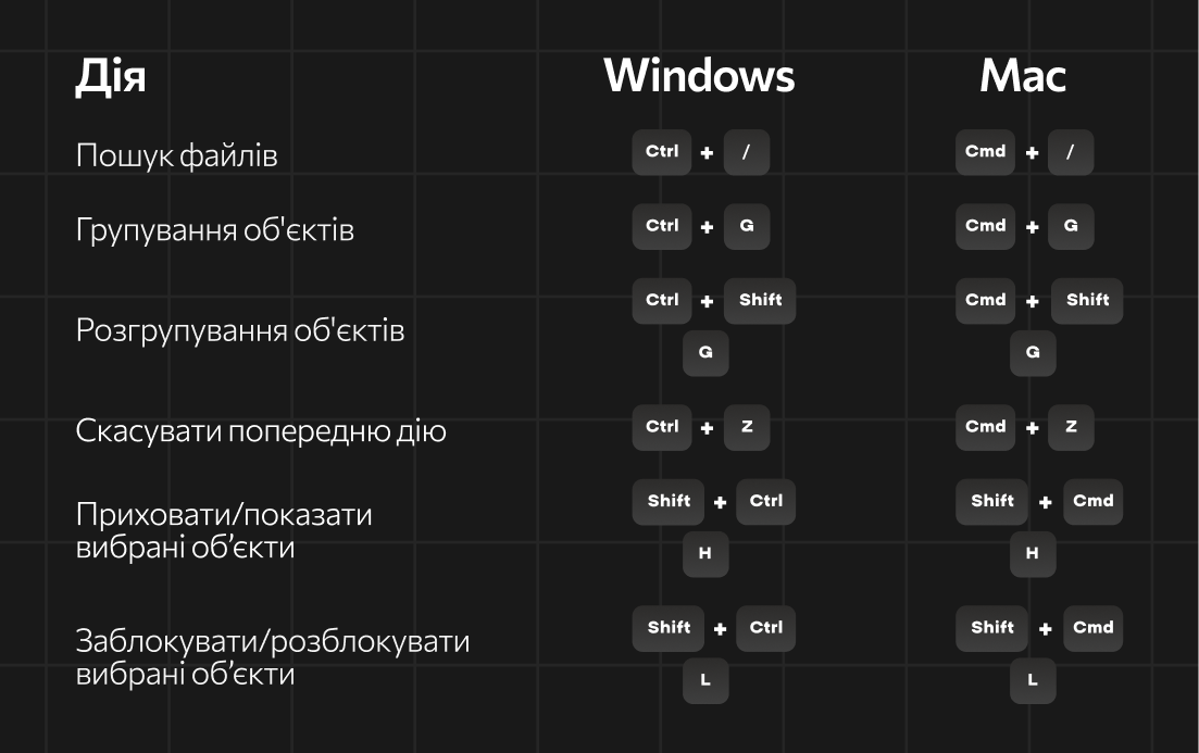Тут зібрали список гарячих клавіш, якими щодня користуються дизайнери Kukurudza. Зберігай та забирай собі у роботу!