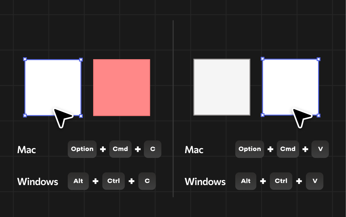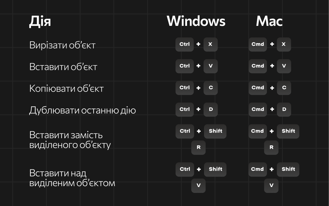 Ця комбінація допоможе тобі за секунду скопіювати всі візуальні властивості (колір, шрифт, тіні тощо) одного об'єкта і перенести їх на інший. А це дужеее економить час, коли у тебе багато однотипних елементів.