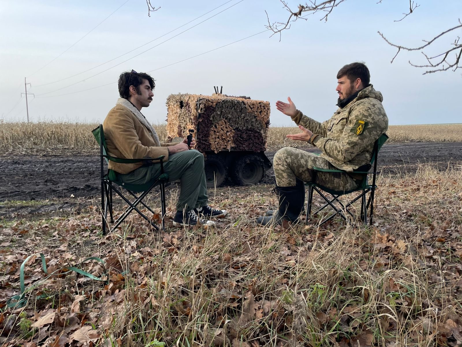 Тейлор ночував із бійцями, ділив із ними сало та смажену картоплю і найбільше був вражений не стільки технікою, скільки відкритістю людей, яких війна спустошує фізично та психологічно.