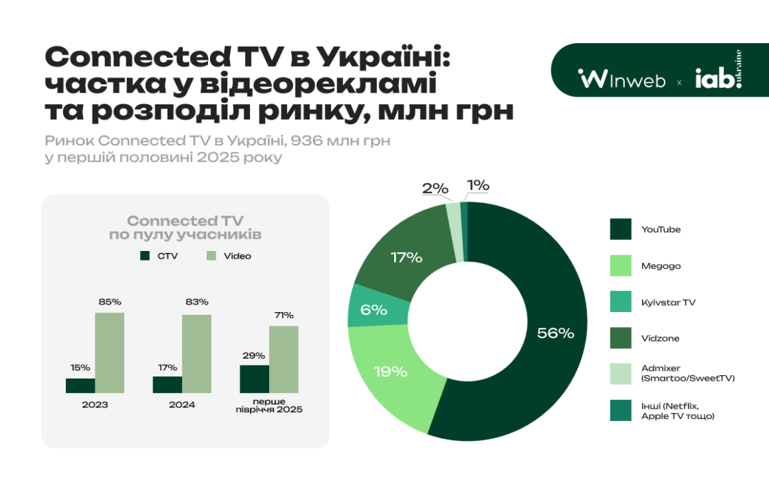 Завдяки вдосконаленню методики у 2025 році особливу увагу приділено Connected TV. Уперше цей сегмент було оцінено з урахуванням реальної ваги у відеобюджетах, що дозволяє точніше відстежувати його вплив на ринок.