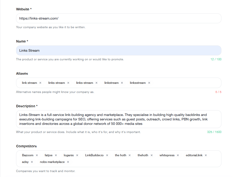 Додайте у систему моніторингу згадок свій сайт та 5 основних конкурентів.
