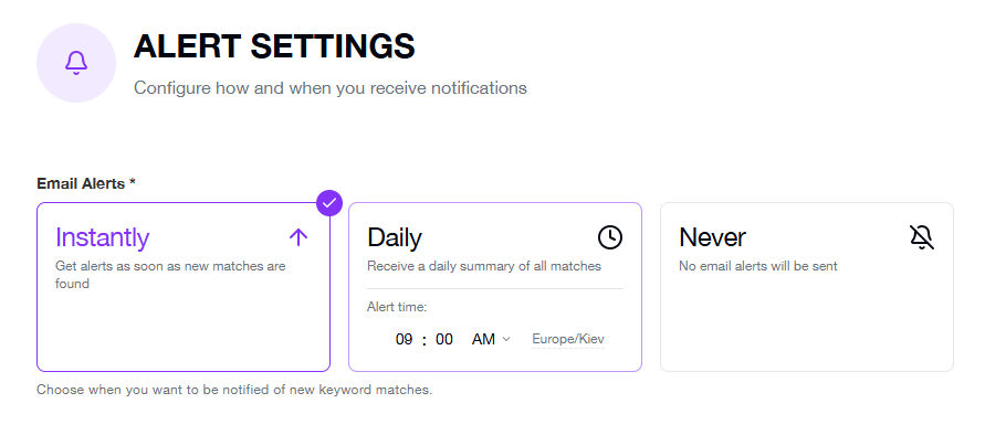 Активна фаза: впевнені, що фільтри працюють добре? Змінюйте налаштування на реальний час (негайні повідомлення). Як тільки на Reddit з’явиться потрібний запит, ви відразу отримаєте сповіщення на email та зможете відреагувати на нього першими.