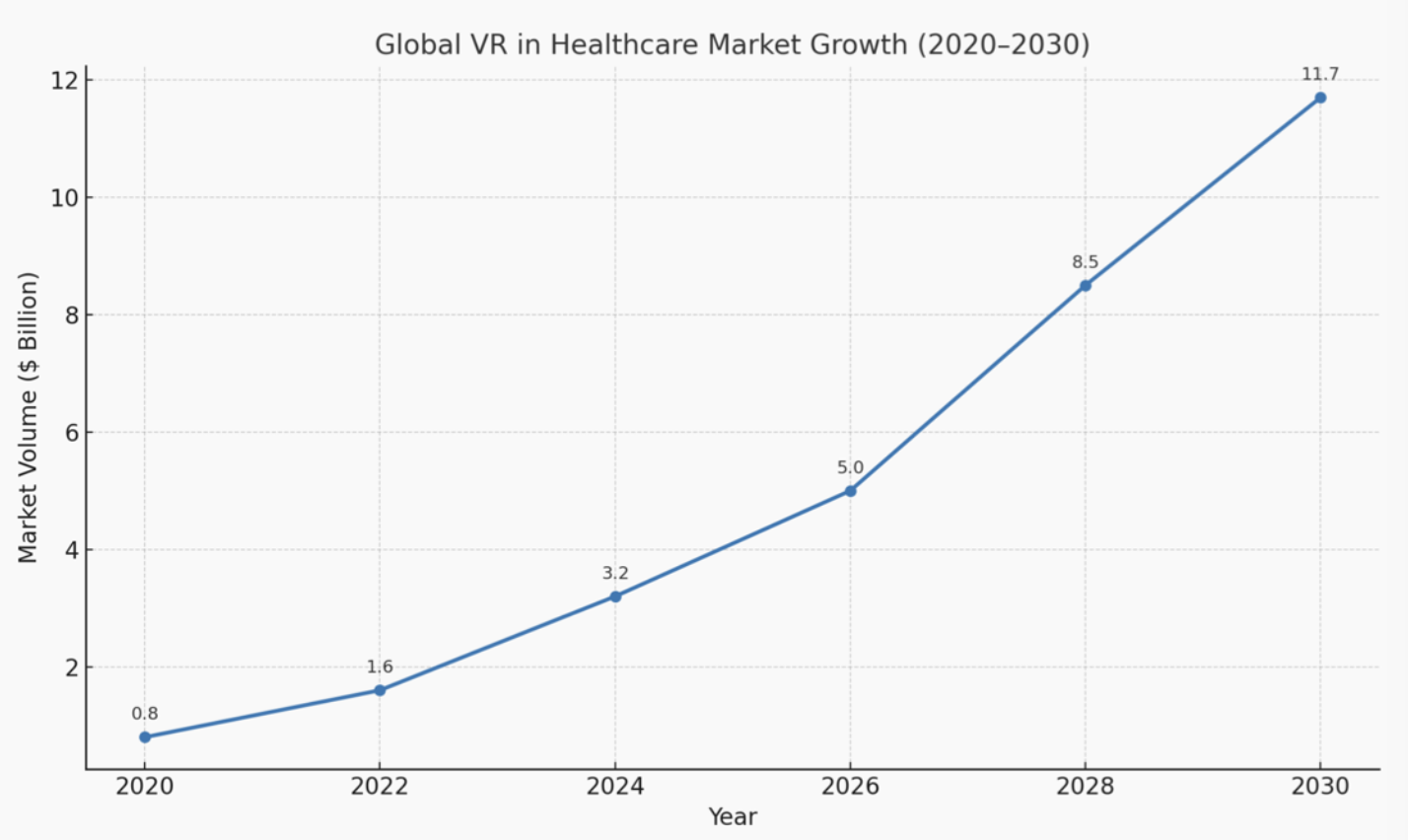 Графік: Ріст світового ринку VR у медицині (2020–2030)