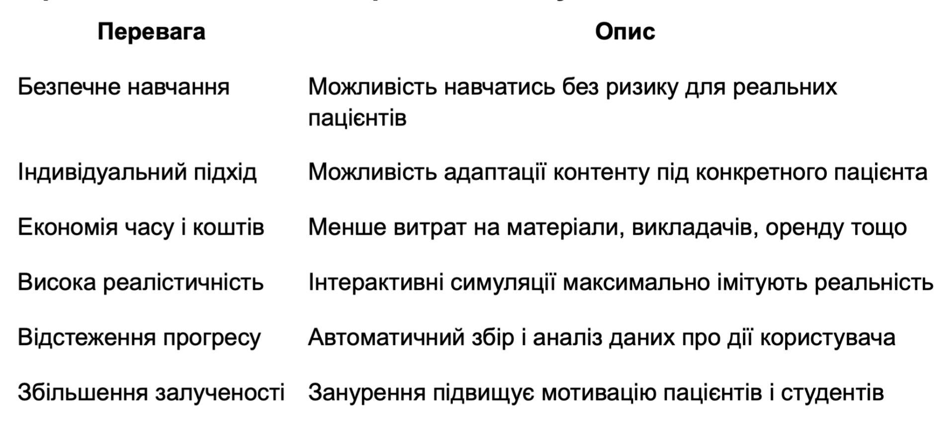 VR у медицині дозволяє майбутнім лікарям і медсестрам відпрацьовувати навички в умовах, максимально наближених до реальності.