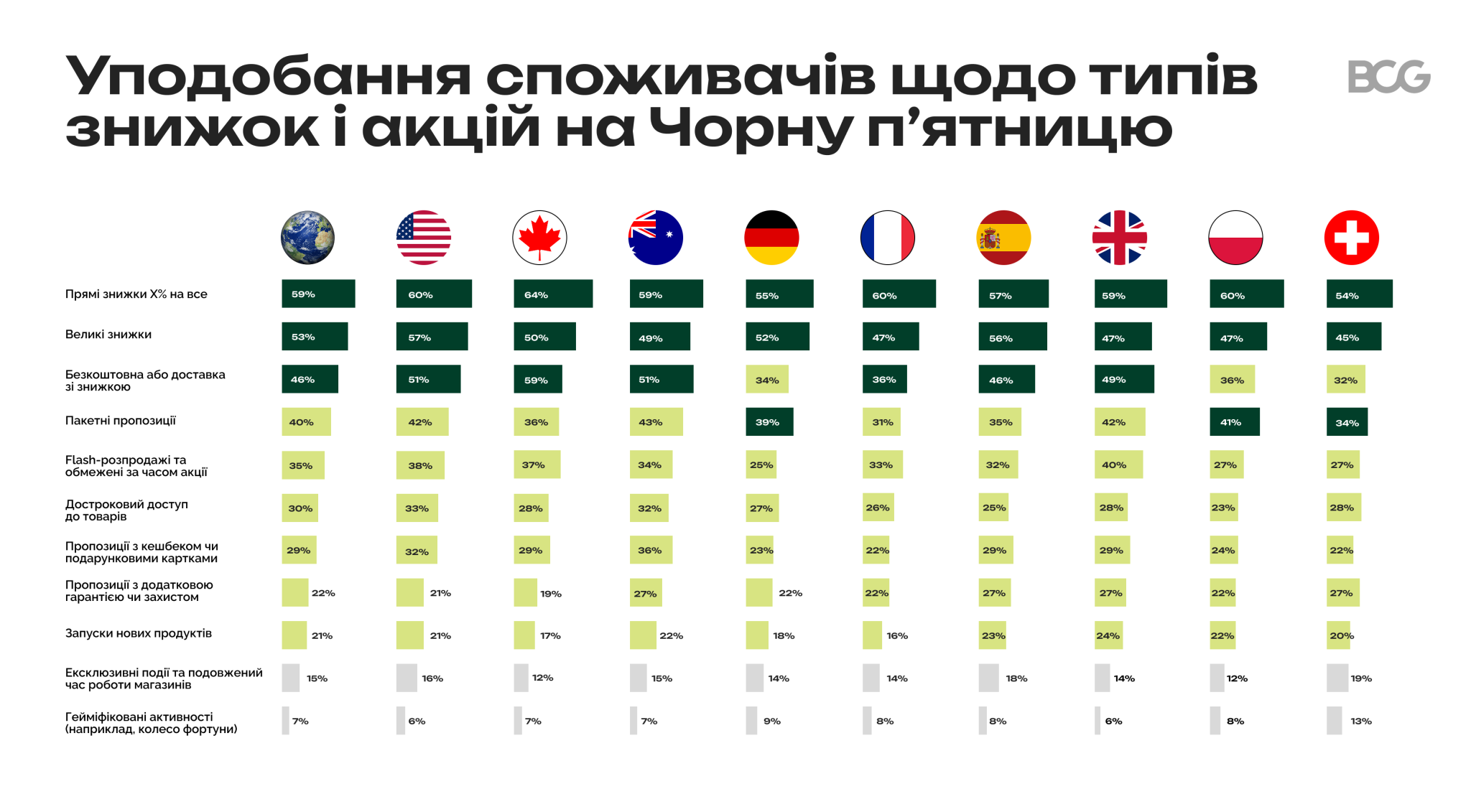 В умовах підвищення цін та інфляції, покупці очікують вигідних пропозиції, проте інші види акцій теж працюють. Наприклад, ранній доступ до розпродажу (pre-sale для лояльних клієнтів) приваблює приблизно половину покупців, а кешбек чи подарункові карти за покупку — близько 40-50%.