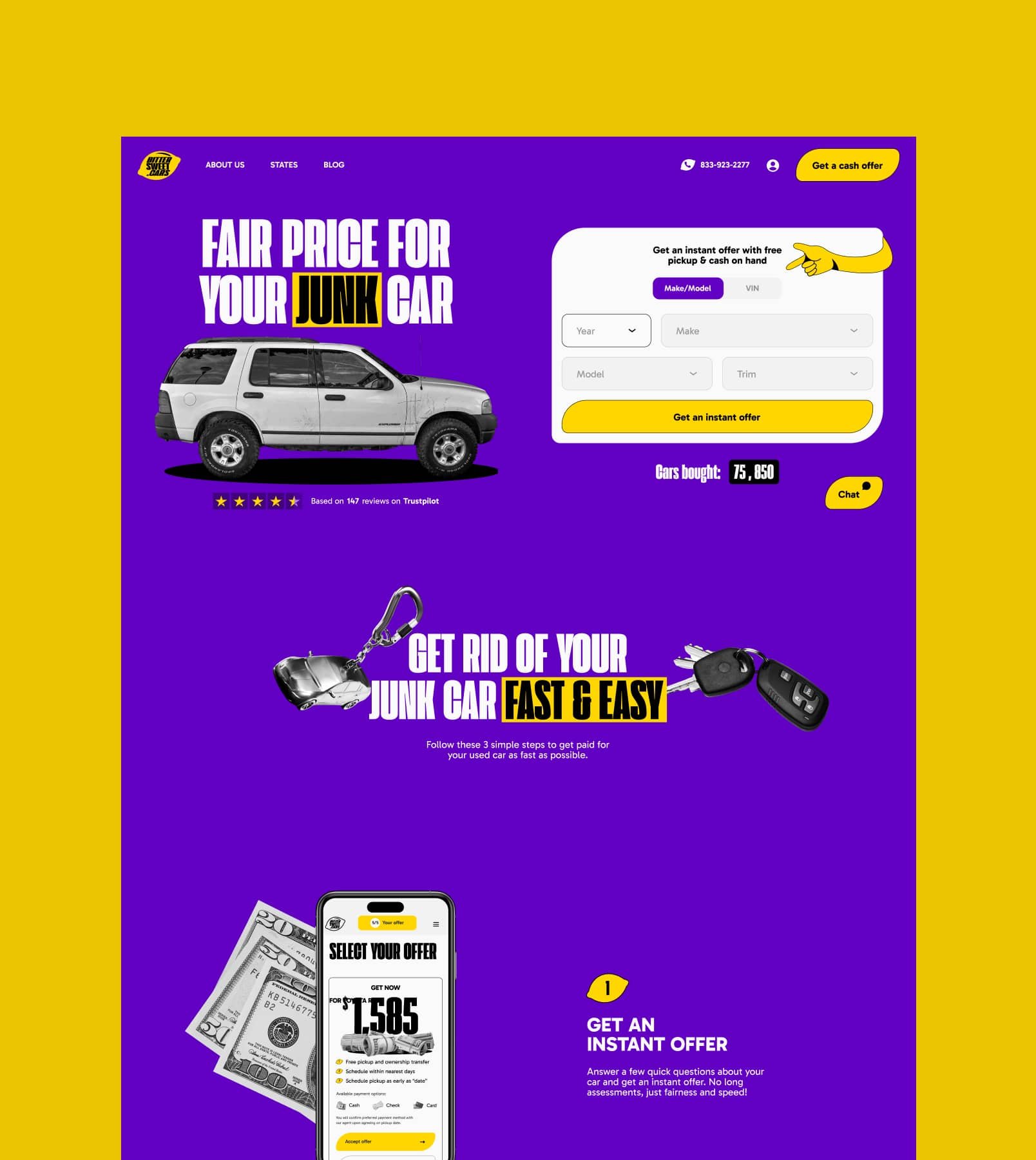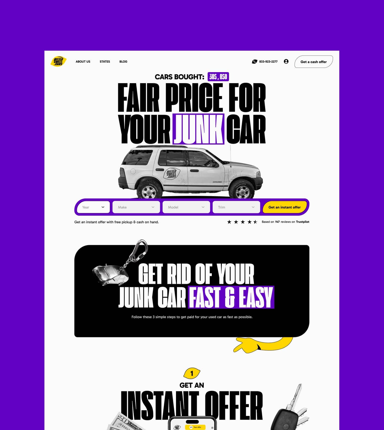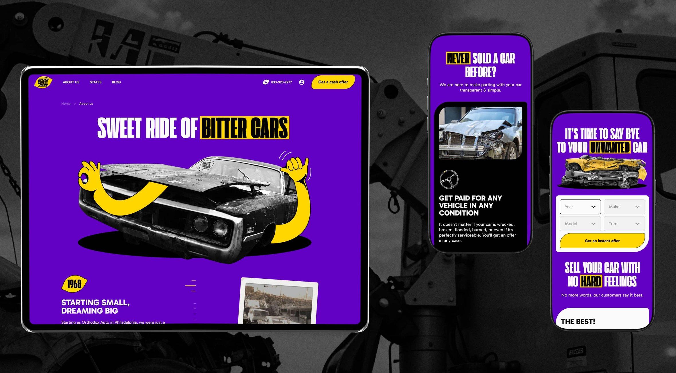 Клієнт прийшов до нас з брендом, що застряг у заторі — загубився в морі схожих конкурентів. Вони не хотіли бути просто ще одним ноунейм покупцем старих авто. Вони прагнули стати національним брендом, що допомагає американцям легко позбутися вживаних машин.