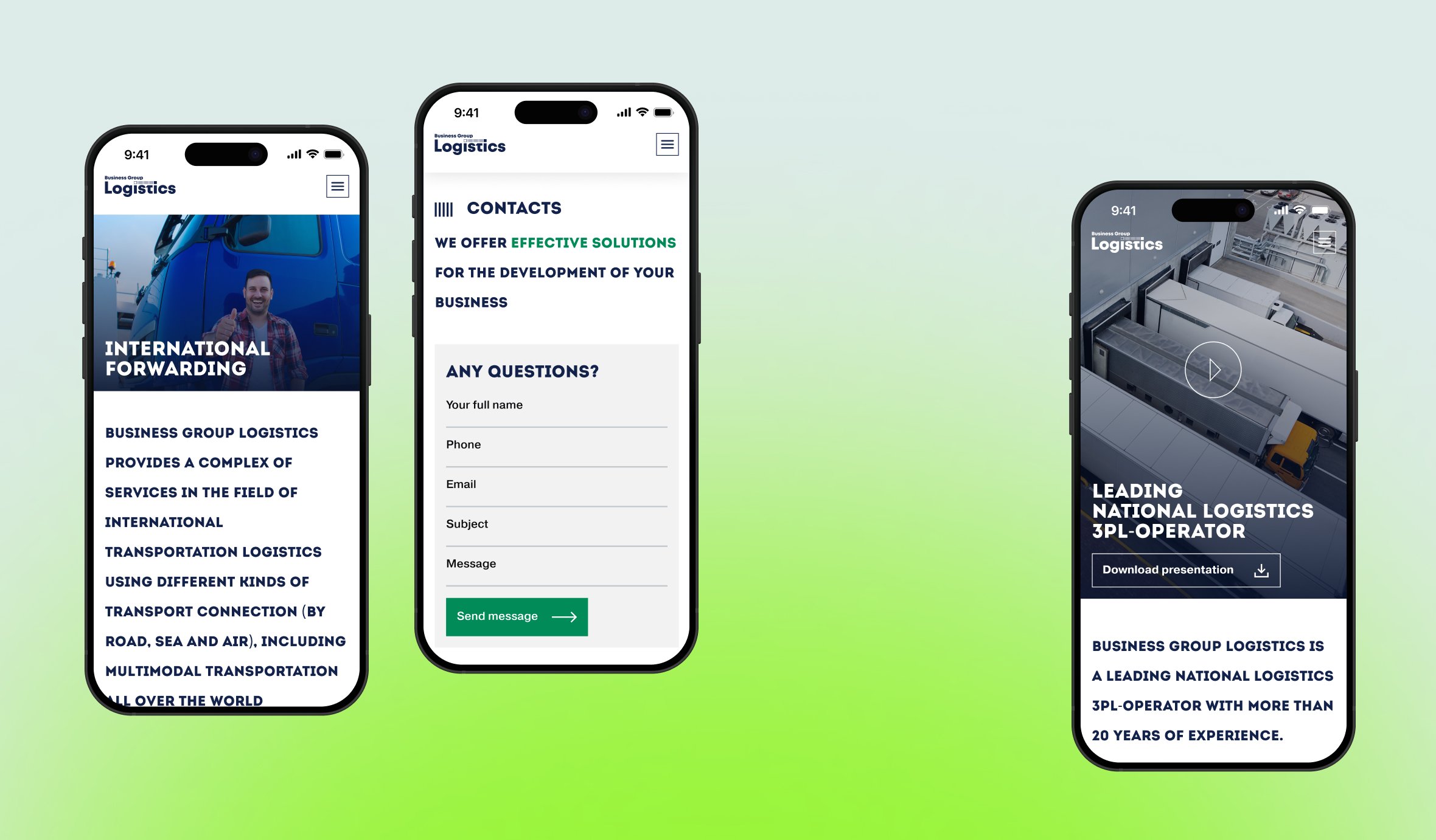 Редизайн Business Group Logistics став не просто оновленням зовнішнього вигляду — це інструмент продажів та комунікації, який відображає лідерство компанії в галузі. Сучасний UX/UI допоміг компанії підкреслити свої конкурентні переваги та зробити взаємодію з клієнтами простою та ефективною.