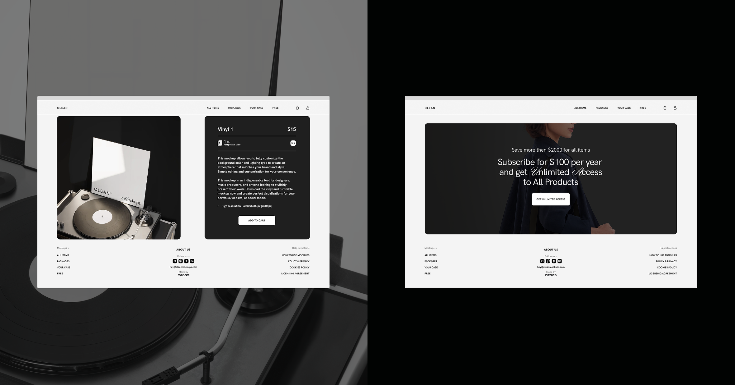 Тому Clean Mockups став прикладом того, як поєднати чистий UX, простоту покупки і візуальний фокус на самому продукті.