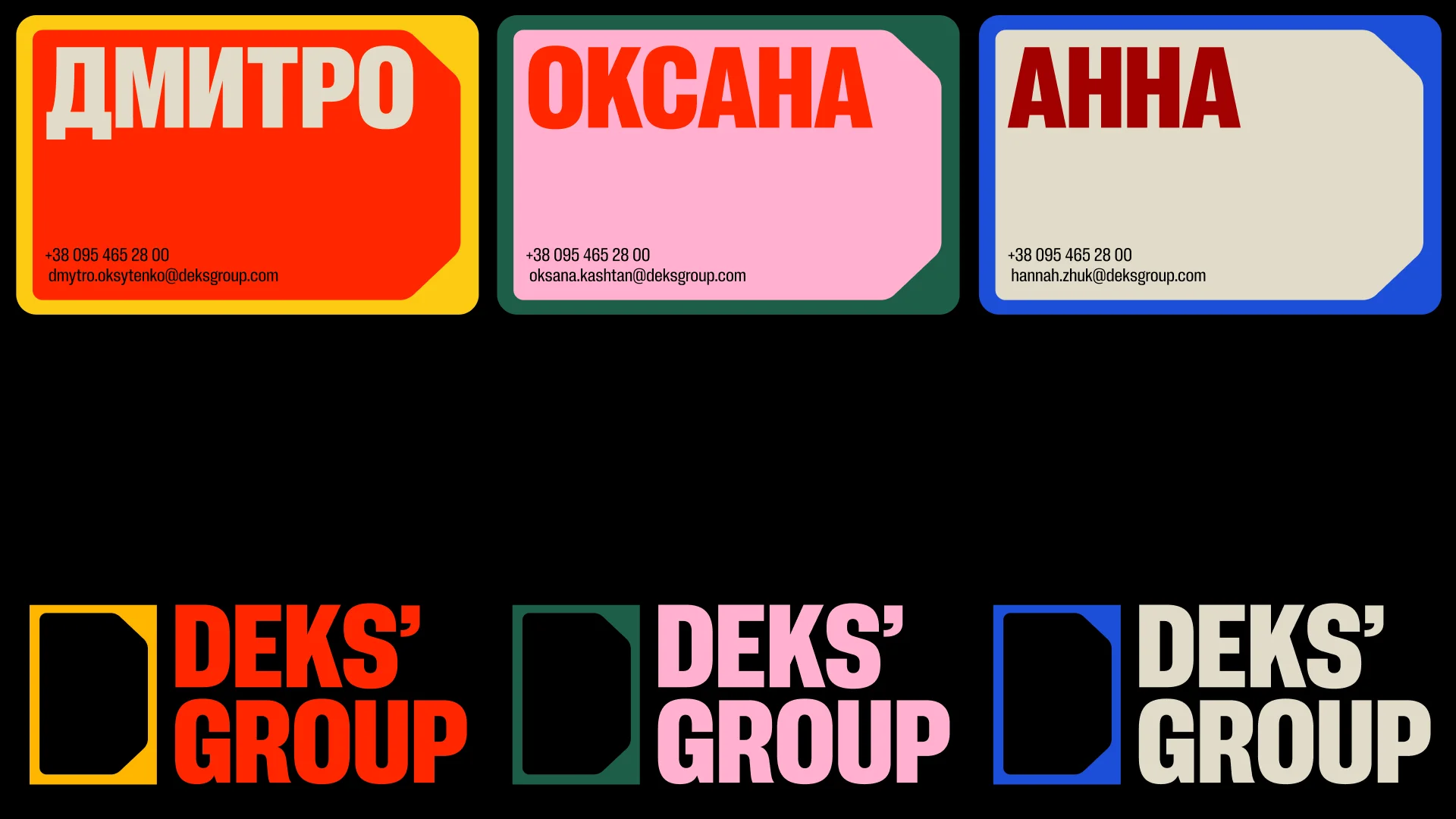 і створили під кожну повну дизайн-систему — щоб бренд міг знаходити спільну мову з різними замовниками. Тому тепер DEKS`GROUP може спокійно гратися з палітрами, змінювати настрій і працювати з широкою аудиторією — але все одно виглядати стильно та бути собою.