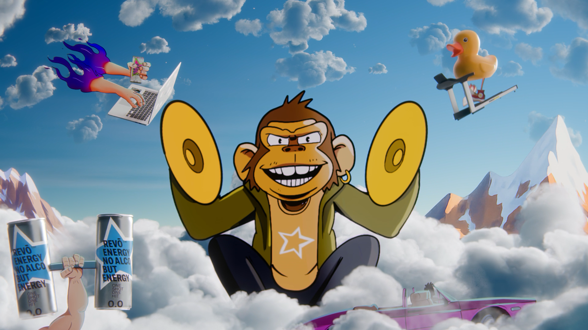 Придумали для відео яскраво-фановий світ, в який потрапляєш з першим ковтком нового Revo. В ньому ми показали, як поєднуються веселощі та ноу-алко.