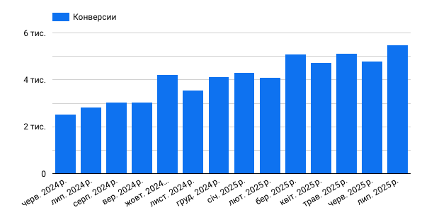 1. За рік конверсії зросли з ~2,5 тис. у червні 2024 → до 5,5 тис. у липні 2025.
