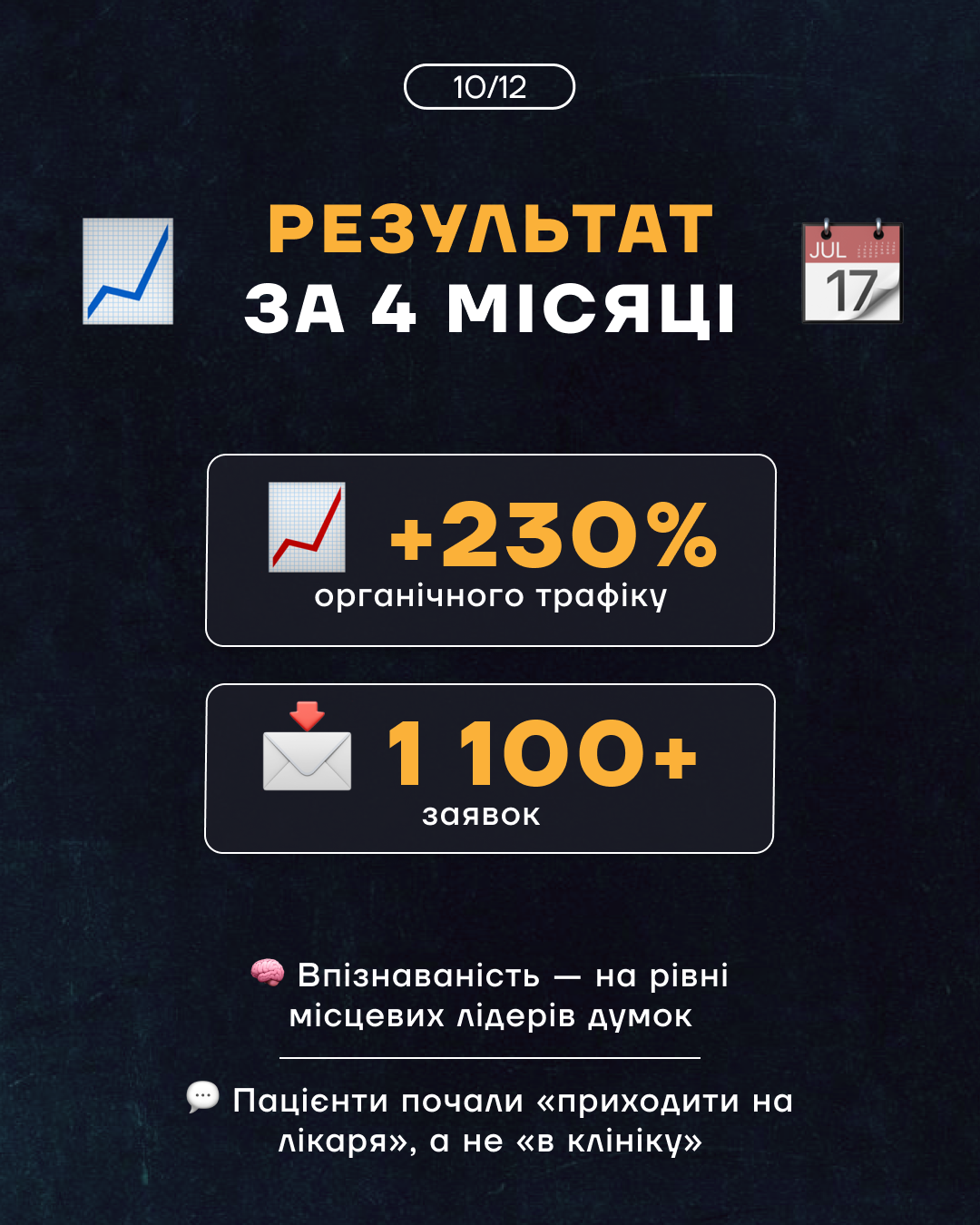 - Сформували позиціонування клініки та її унікальний тон комунікації.