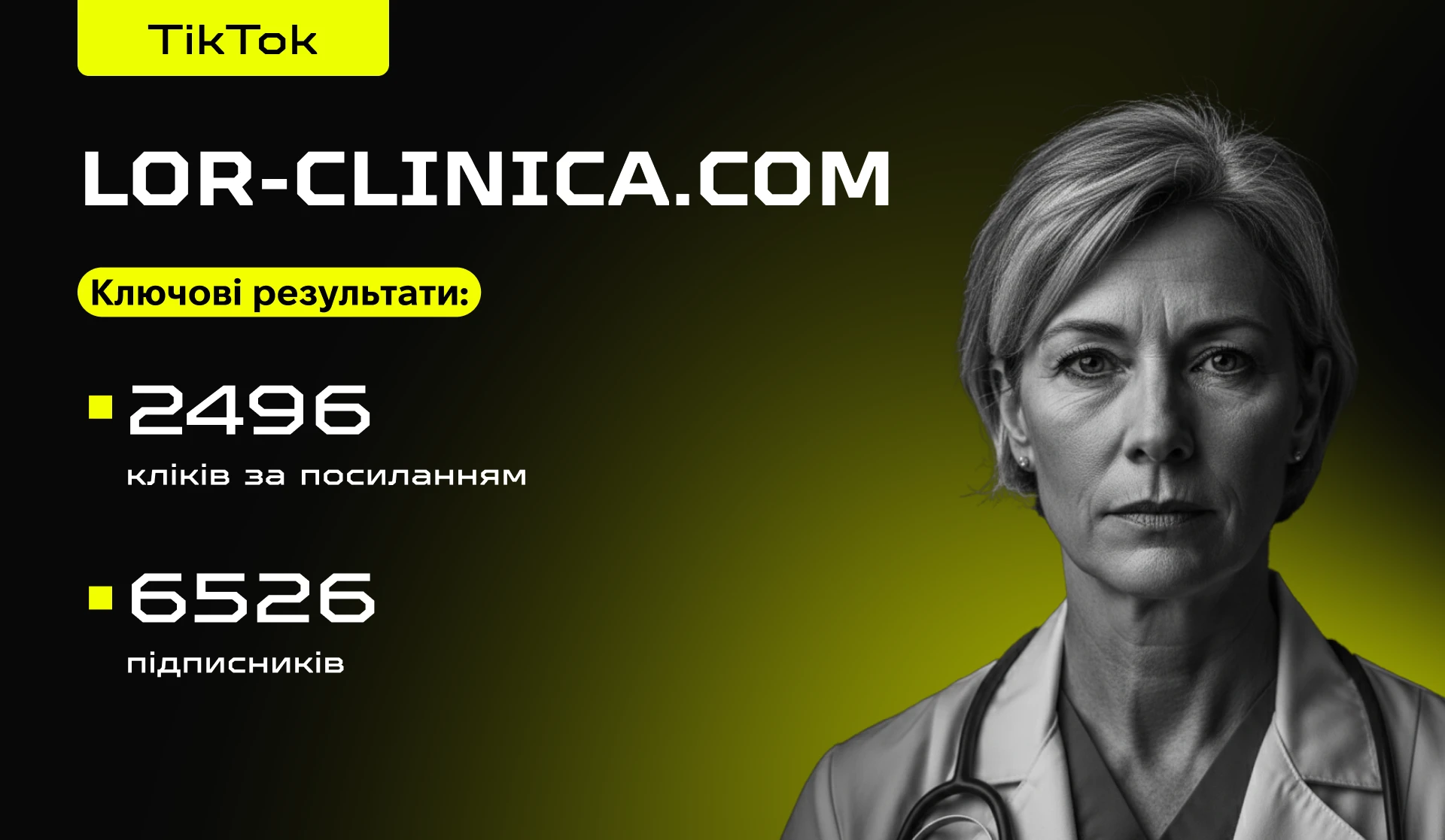 Lor clinica - один із наших клієнтів, що прагне поєднати успішний медичний бізнес та пацієнта який довіряє лікареві, його авторитету та рекомендаціям. Клініка прагнула посилити свою присутність в Тік Ток. Наш кейс ЛОР-клініки показує, що Тік Ток може стати надійним каналом для залучення нових пацієнтів для бізнесів в медичній сфері