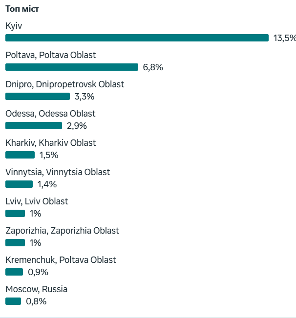 - Охоплення сторінки не перевищувало 10 500 людей на місяць.