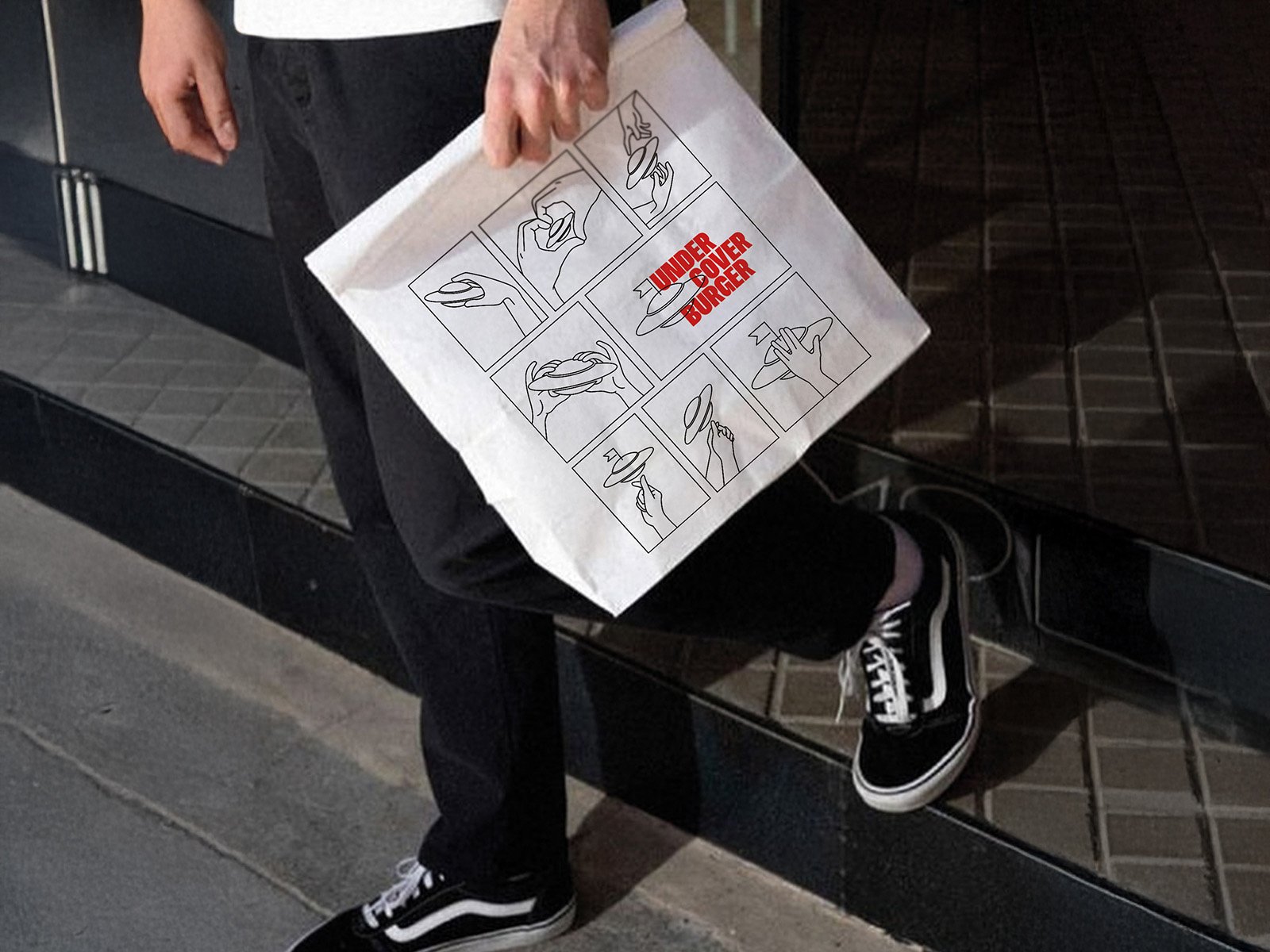 Building a brand that connects directly to the product was the starting point for Undercover burger. The concept grew from the burger itself: a UFO-style form, pressed and sealed along the edges, with the entire filling hidden inside. A true “burger under cover.” This idea shaped both the name and the tagline: Undercover burger — Arrived to be eaten.