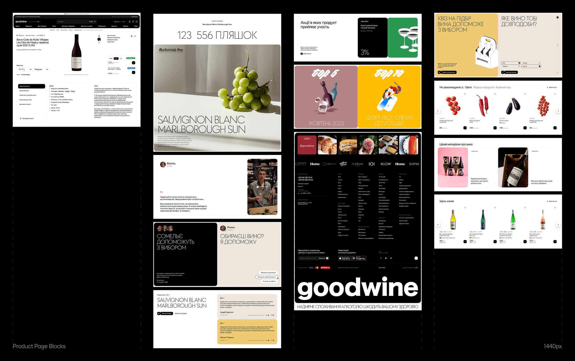 У вебверсії goodwine закладено багато сценаріїв покупок — повсякденні та такі, що потребують екстра даних, щоб облегшити вибір: є тематичні квізи для підбору товарів під настрій чи подію — як-от для пікніка або подарунка.