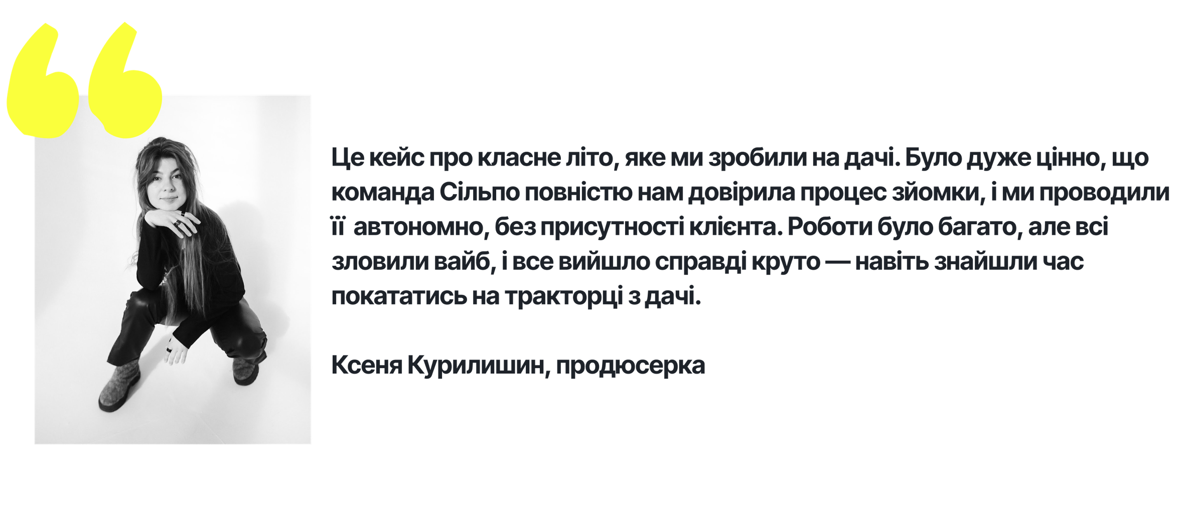 Якщо не враховувати пакування триметрового костюма гусені, то найбільшим викликом був пошук локації. Слід було знайти дачу з великою кількістю цікавих місць для усіх сюжетів. За задумом треба було показати 10 різних продуктів Сільпо, які «виростають» у різних частинах дачі. Відповідно, мало бути 10 кінематографічних точок для зйомки. Нам дуже пощастило, що в нашої художниці-постановниці Катрусі була якраз така дача — це стало суперплюсом. Окрім цього, на ній був песик, якого ми теж спонтанно додали у ролик. Тож ми сприймали цю зйомку як справжню поїздку на дачу, під час якої ще й зняли рекламу :)