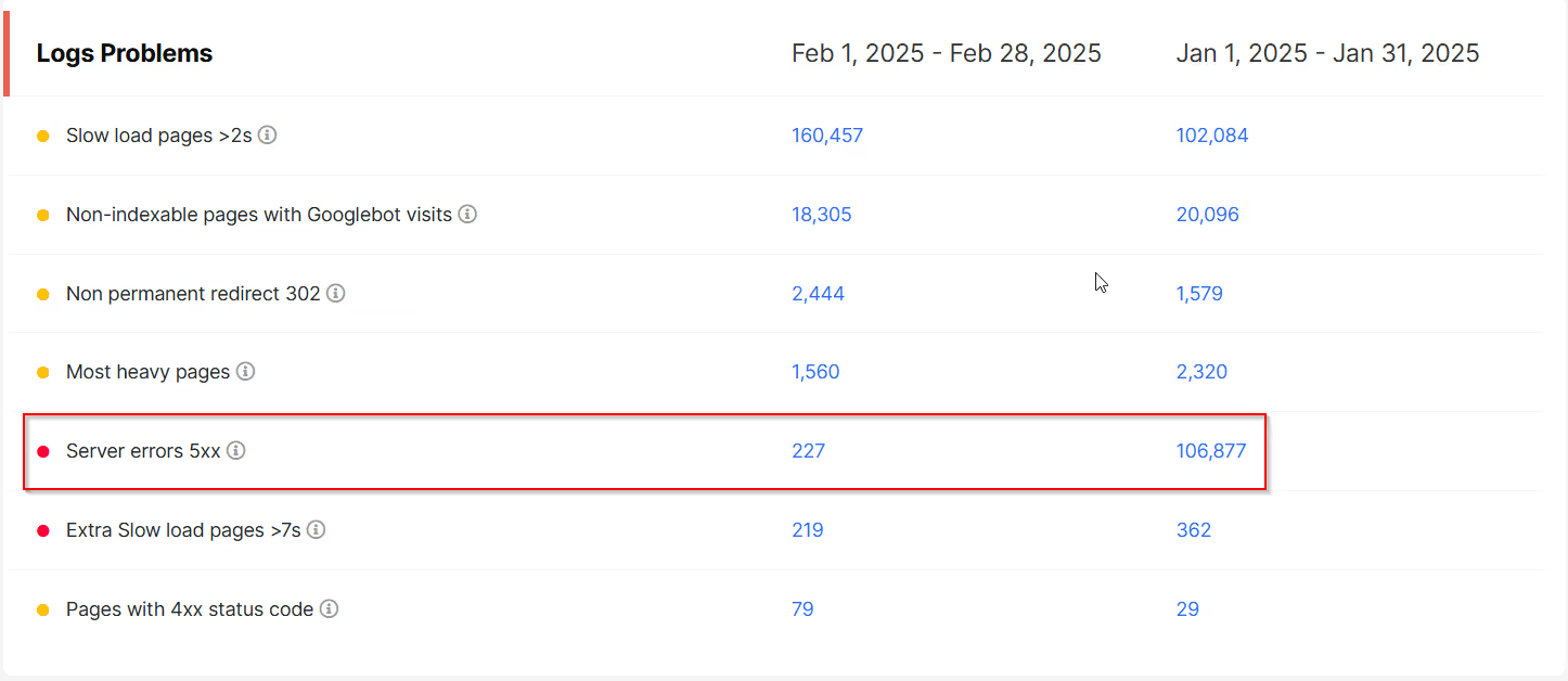 Після кількох тижнів співпраці та налаштування технічних аспектів ми усунули всі проблеми й видалили понад 100 000 сторінок, які спричинювали помилки 5xx.