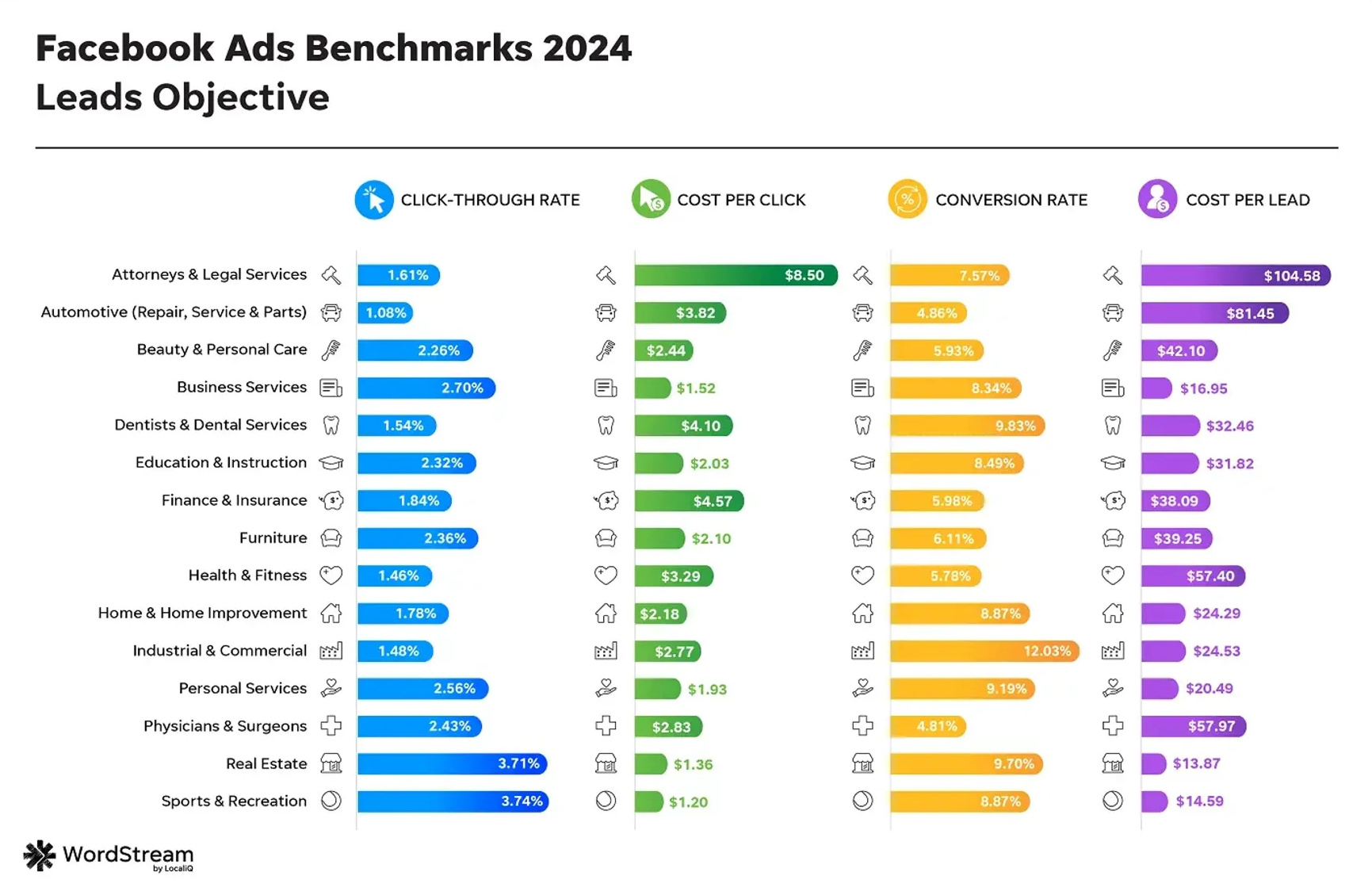 Середній CTR за період роботи — 2%. Щоб зрозуміти ефективність CTR ми вивели середнє значення CTR для усіх сфер (оскільки наш випадок унікальний) кампаній з ціллю «Ліди» відповідно до щорічного звіту WordStream Facebook Ads Benchmarks report.