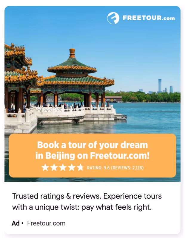 Ми також розробили унікальні локалізовані креативи із CTA, оцінками користувачів і кількістю доступних турів на місто. Це дозволило нам виділитися серед конкурентів і досягти вищих показників залученості та конверсії.