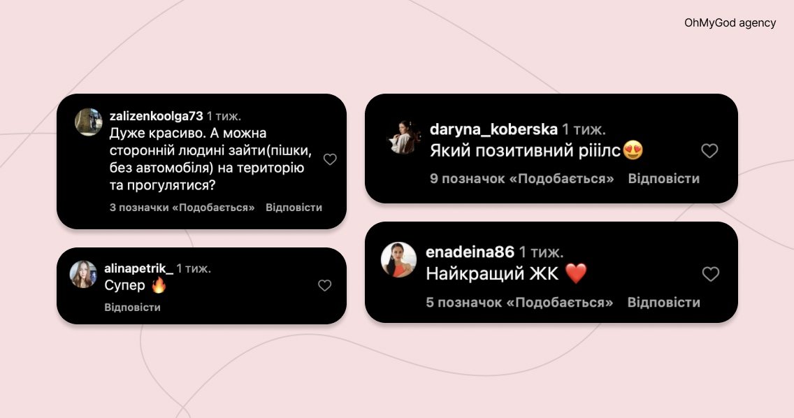 Відео викликало позитивний емоційний відгук у підписників, що свідчить про реальне зацікавлення житловим комплексом. Кампанія підтвердила, що нативна подача через знайомого та близького аудиторії лідера думок ефективно підсилює довіру до бренду й створює довготривалий ефект після перегляду.