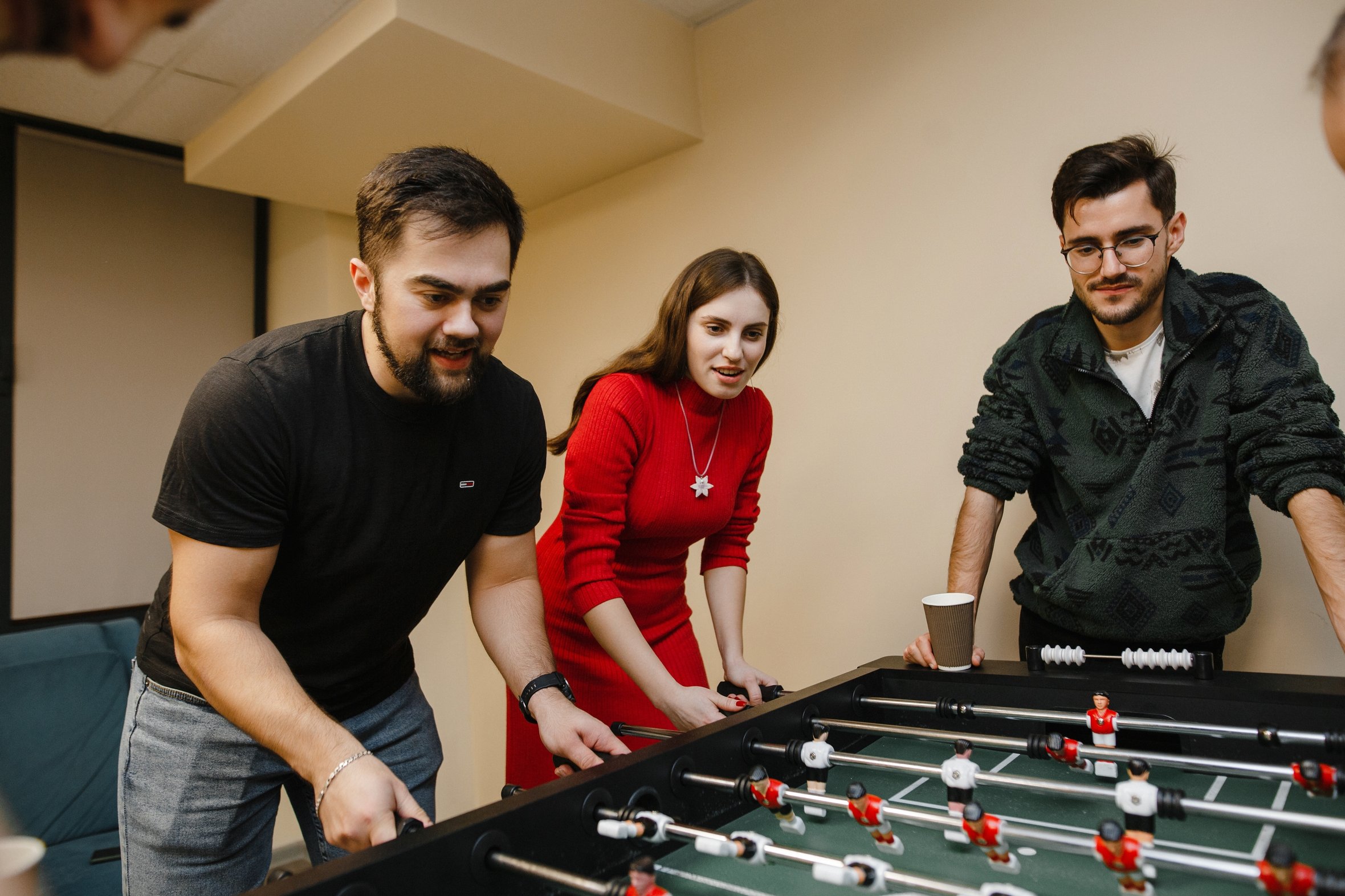 У кожному місті є свої особливості. У Харкові, наприклад, уже давно сформувалася активна ком’юніті-культура — колеги організовують кіновечори, ігрові зустрічі, турніри з настільних ігор. Під час обідніх перерв співробітники можуть зіграти кілька партій у шахи, а також відпочити за настільним тенісом — це допомагає переключитися, перезарядитися й підтримати неформальне спілкування в команді. У Дніпрі та Одесі розвиваються ком’юніті настільних ігор, проводимо, наприклад, легендарні Dungeons & Dragons. З-поміж останніх ініціатив популярним став каптейстинг — дегустація кави з розповідями про кавову культуру, походження зерен та різні сорти. А ще в Дніпрі самоорганізувалося ком’юніті фанатів Формули 1, яке збирається на спільні перегляди.