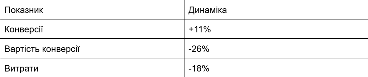 Також наша співпраця позитивно вплинула на окупність інвестицій у рекламу. Загальні витрати на просування скоротилися на 17,7%, тоді як кількість заявок зросла.